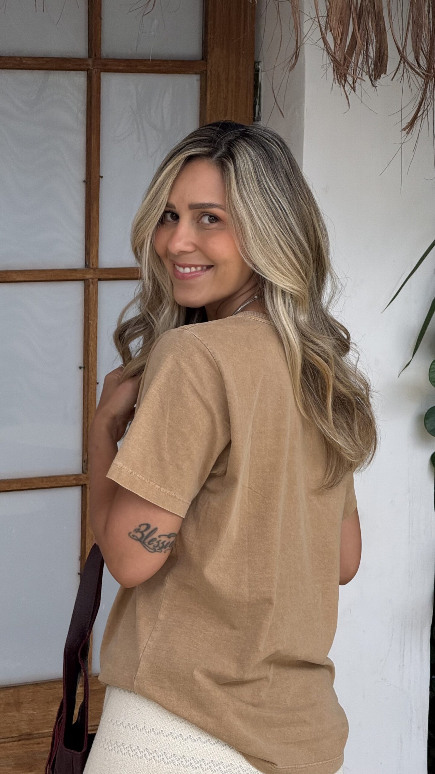 T-shirt modelagem oversized confecionada em malha 100% algodão, estonada em lavanderia qua da a peça maciez, com processo de pre-encolhimento para não encolher quando você lavar. A peça possui decote redondo com ribana, manga curta, estampa frontal em silk screen que não racha (não é transfer/sublimação), caimento reto e solto, para maior conforto.
